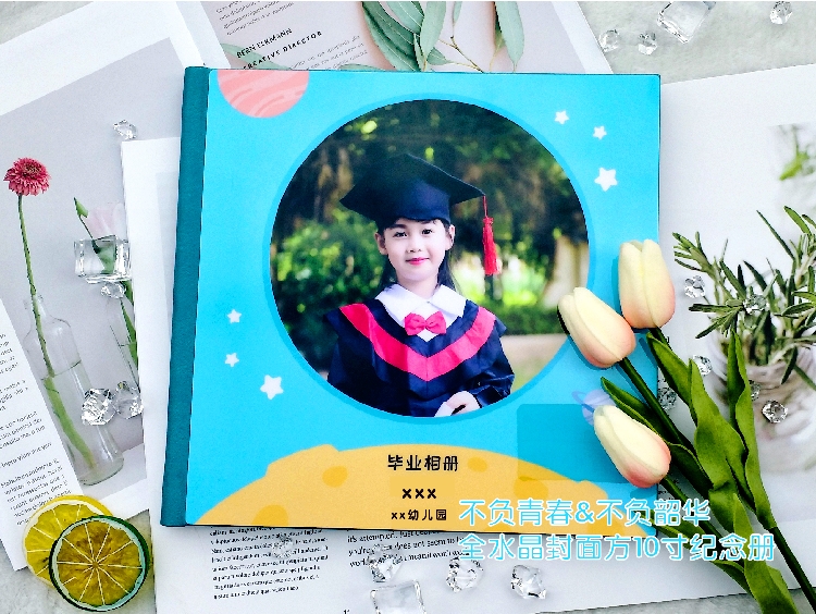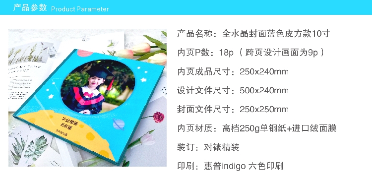 全水晶蓝色皮面 方10寸 毕业纪念册 毕业相册